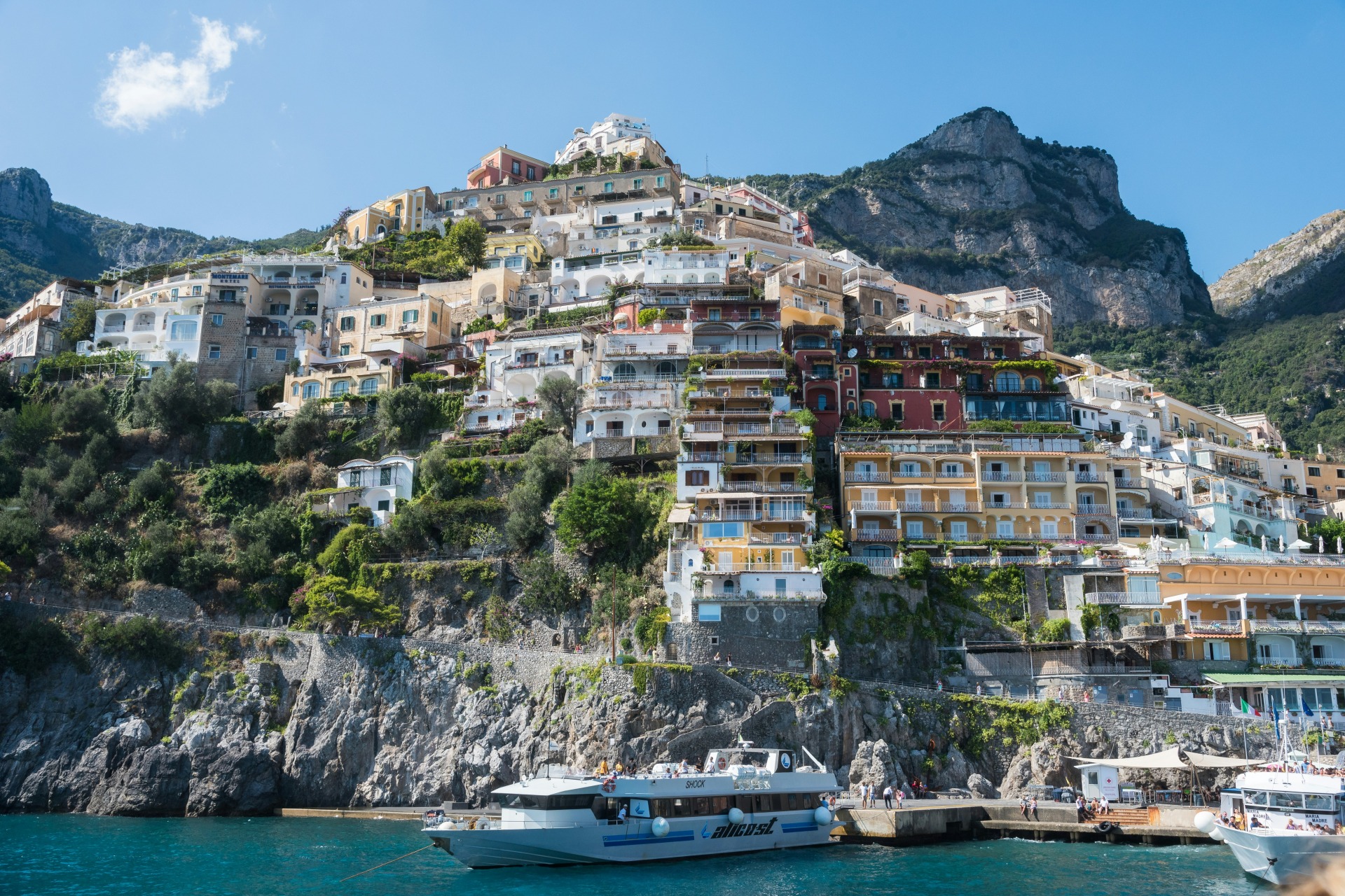 First stop: Positano, with its pastel-colored houses sloping down to the sea, artisan boutiques, and picturesque alleys. You'll have time to stroll, take breathtaking photos, and soak up the romantic atmosphere of this unique village.